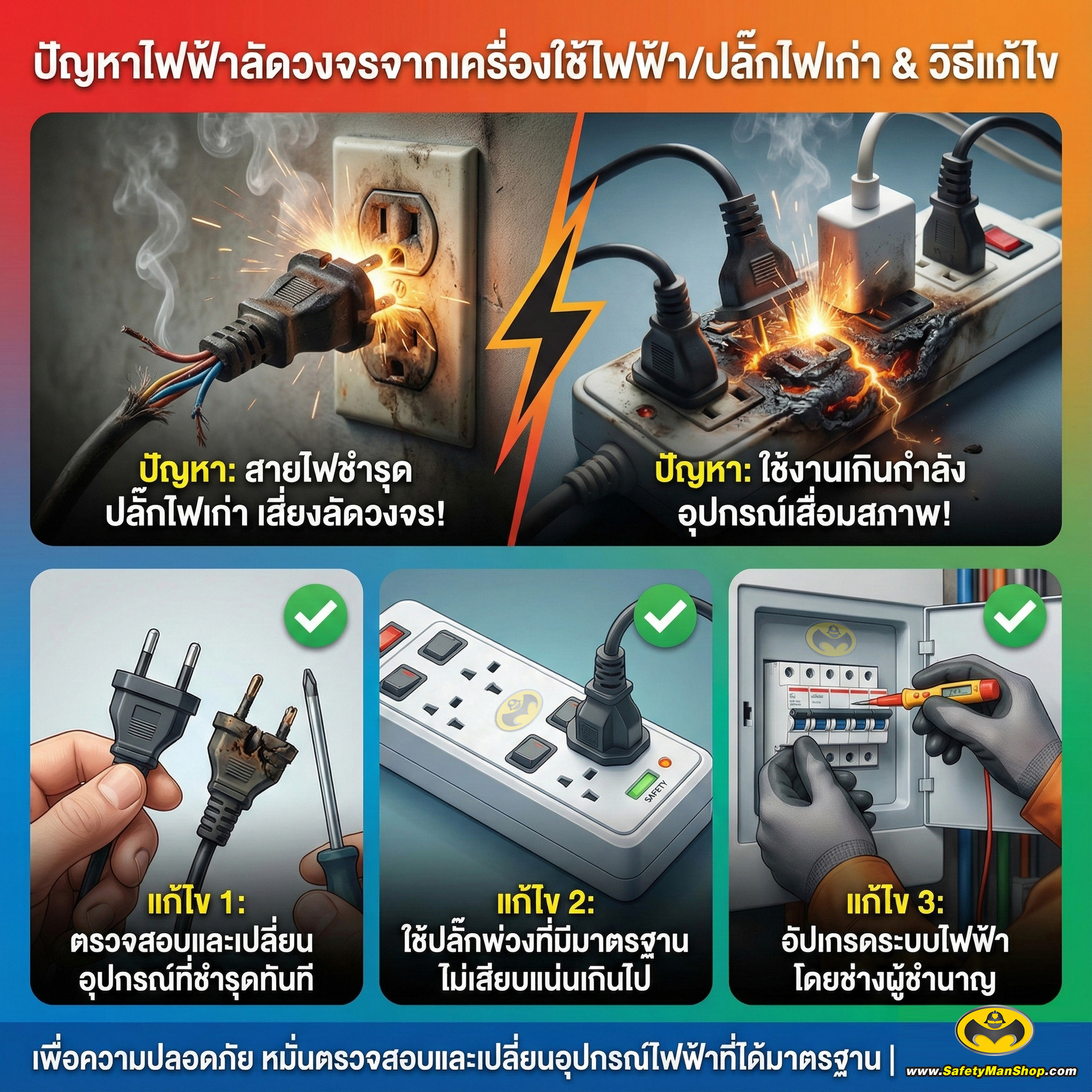 #ความปลอดภัย #ไฟฟ้าลัดวงจร #ป้องกันไฟไหม้ #ปลั๊กไฟ #สายไฟเก่า #SafetyMan #ถังดับเพลิง
